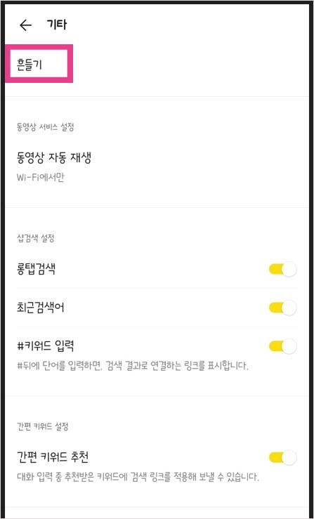 (기능이 켜진 상태에서 "흔들기 설정"이 가능합니다.)