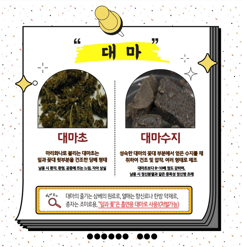 "잎과 꽃"은 흡영용 대마로 사용(처벌가능)