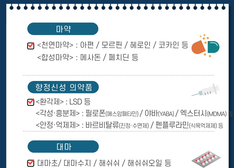 복용 및 소지 시 - "마약류 관리에 관한 법률" 위반에 따라 처벌! - 분미림편