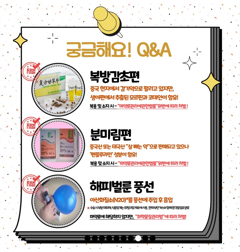 복용 및 소지 시 - "마약류 관리에 관한 법률" 위반에 따라 처벌! - 해피벌룬 풍선