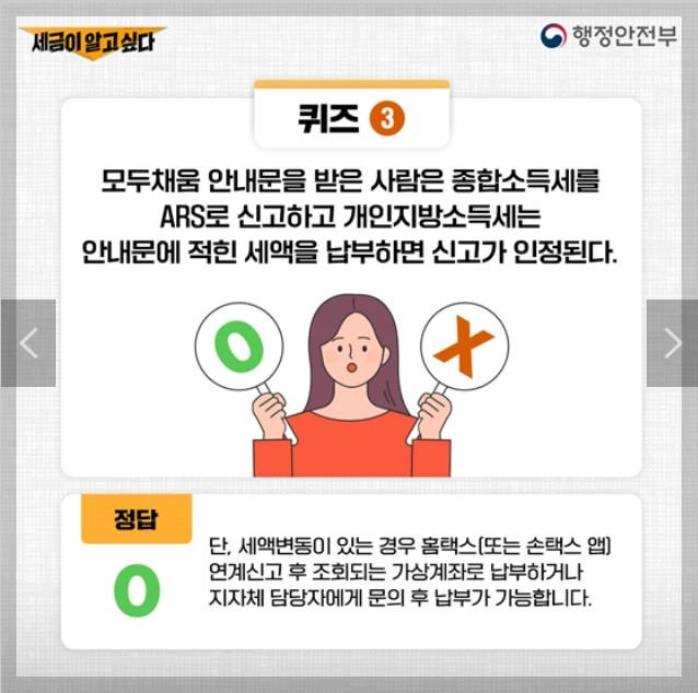 모두채움 안내문을 받은 사람은 종합소득세를 ARS로 신고하고 개인지방소득세는 안내문에 적힌 세액을 납부하면 신고가 인정된다?
