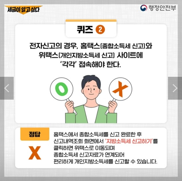 전자신고의 경우, 홈택스(종합소득세 신고)와 위택스(개인지방소득세 신고 사이트에 ‘각각’ 접속해야 한다?