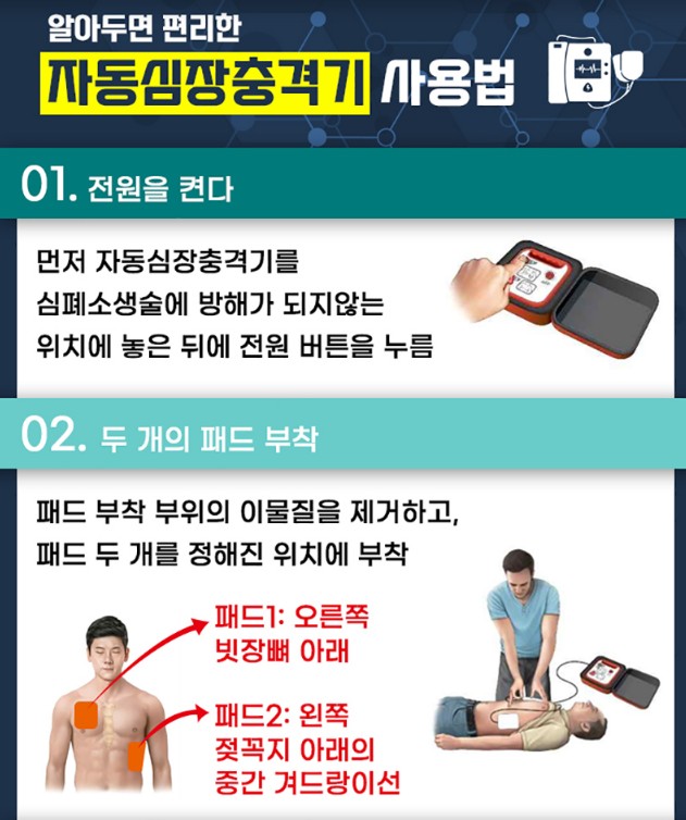 최근에는 지하철 역사나 대부분의 공공건물에 자동심장충격기를 비치하도록 규정되어 있으므로, 평소 자주 다니는 길에서 자동심장충격기가 있는 위치를 미리 확인하는 것이 좋습니다. - 3. 어린아이들도 자동심장충격기를 사용해도 되나요?