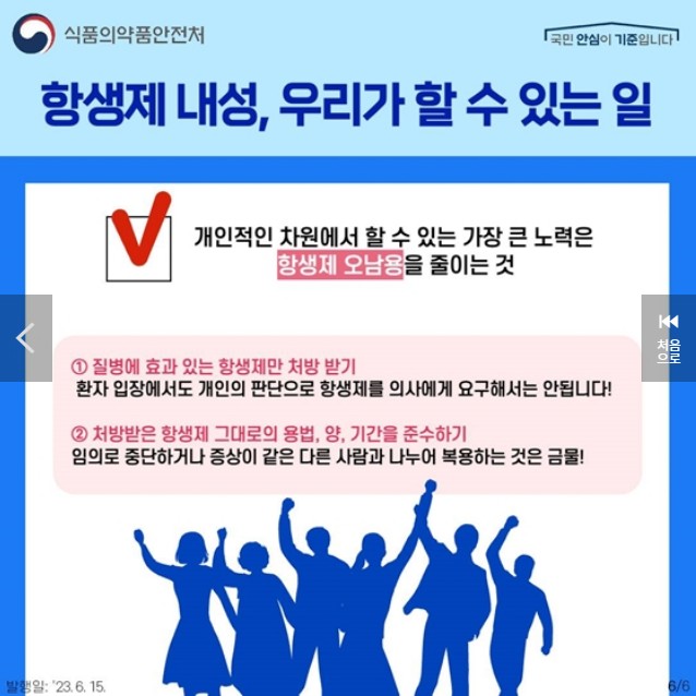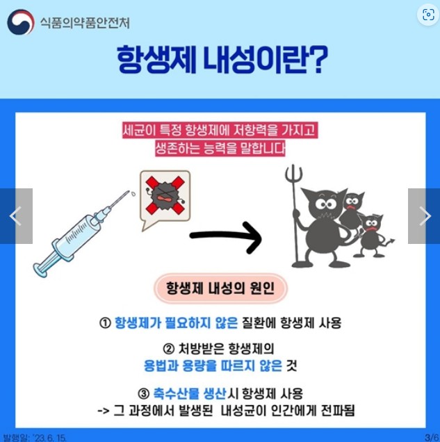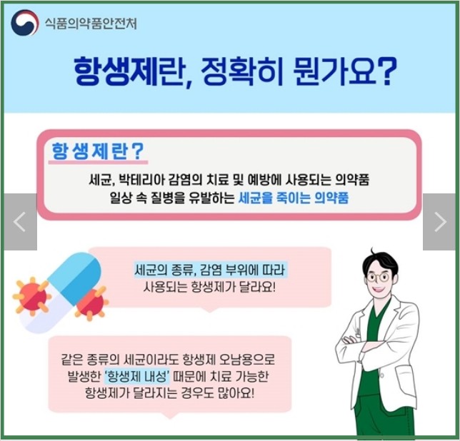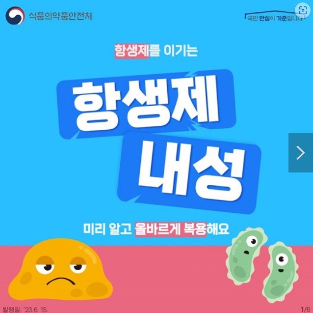- 항생제 내성균이 생기지 않도록 ‘생활 속 항생제 내성 안전 123 수칙’을 실천해요!