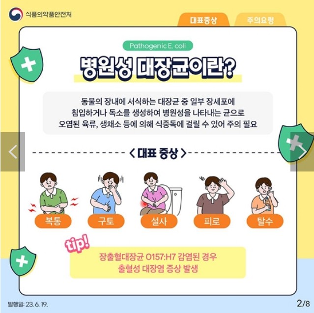 <tip!> 장출혈대장균 O157:H7 감염된 경우 출혈성 대장염 증상 발생