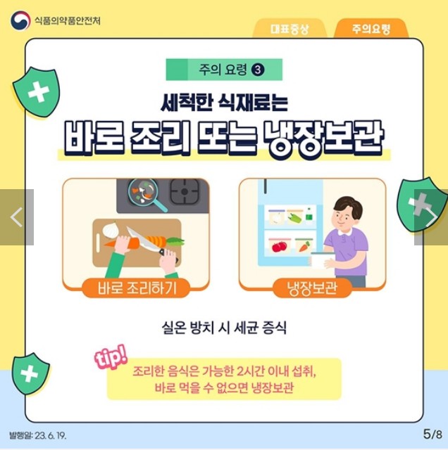 <tip> 조리한 음식은 가능한 2시간 이내 섭취, 바로 먹을 수 없으면 냉장보관