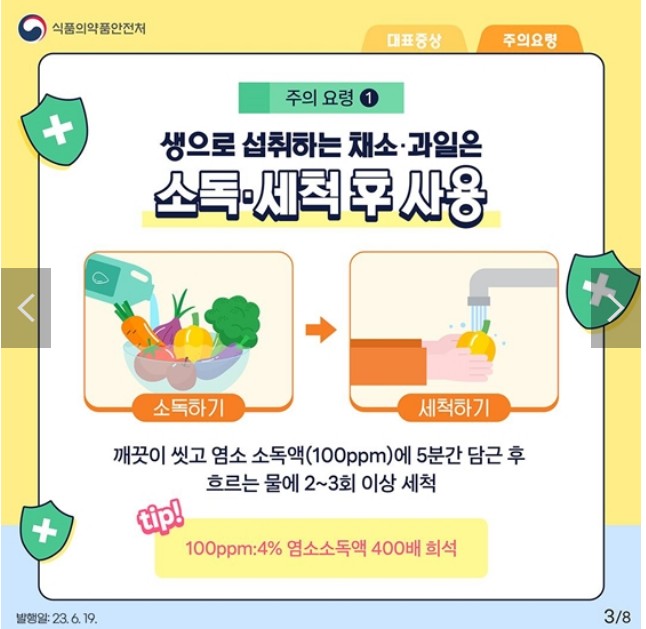 - 1. 생으로 섭취하는 채소·과일은 소독·세척 후 사용
