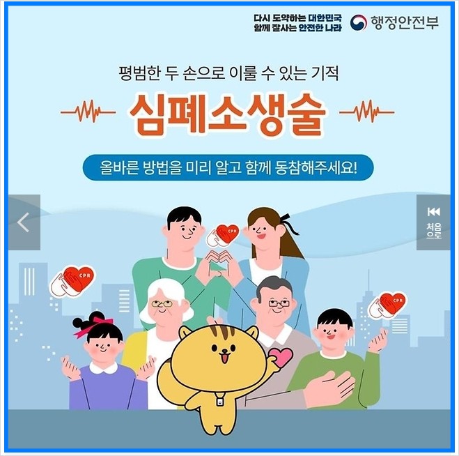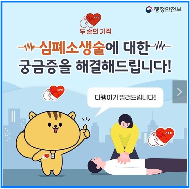 - 심정지 상황에서는 무엇보다 심폐소생술이 가장 중요하다는 사실! 꼭 기억해주세요!