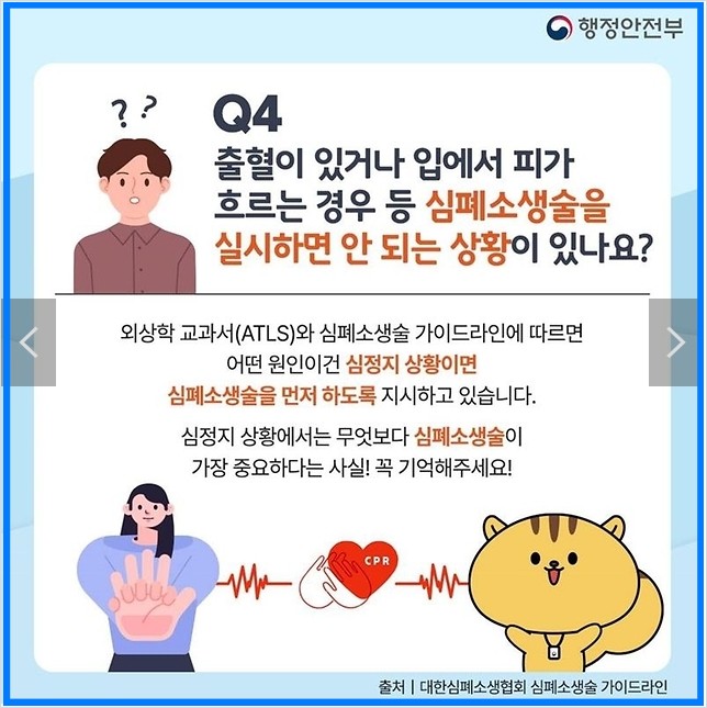 Q4. 출혈이 있거나 입에서 피가 흐르는 경우 등 심폐소생술을 실시하면 안 되는 상황이 있나요?