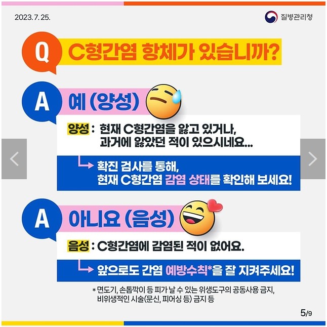 양성 : 현재 C형 간염을 앓고 있거나, 과거에 앓았던 적이 있으시네요.