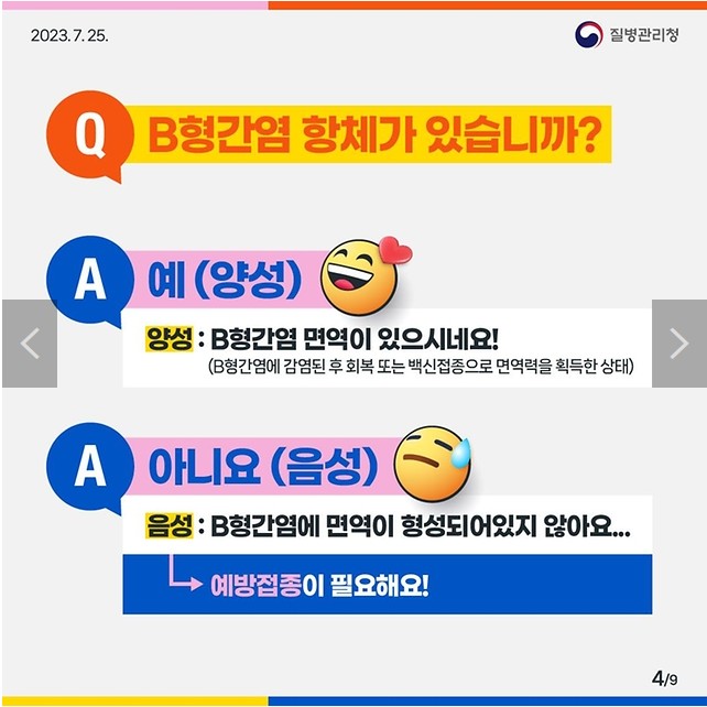 양성 : B형간염 면역이 있으시네요!