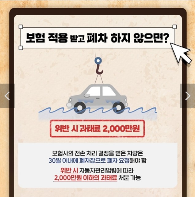 보험사의 전손 처리 결정을 받은 차량은 30일 이내에 폐차장으로 폐차 요청해야 함