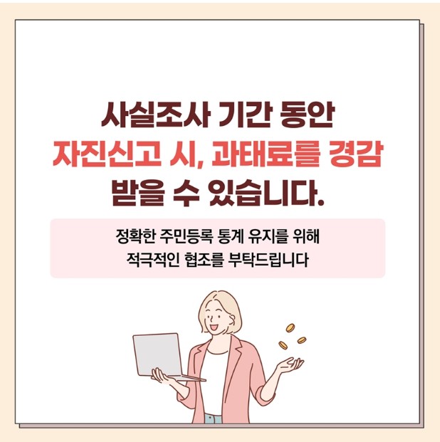 사실조사에 참여하실 때는 반드시 주민등록 상 주소지에서 진행해 주셔야 합니다.