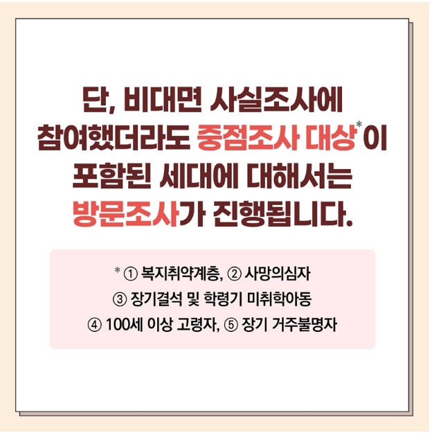 중점조사 대상이 포함된 세대는 방문조사 진행