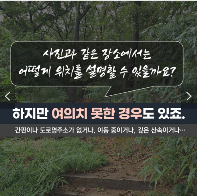 도로명주소가 없거나, 이동 중이거나, 깊은 산속일 경우, 나의 위치를 어떻게 설명할 수 있을까요?