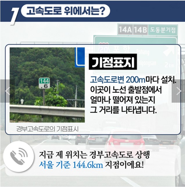 (예시) 지금 제 위치는 경부고속도로 상행 서울 기준 144.6km 지점이에요!