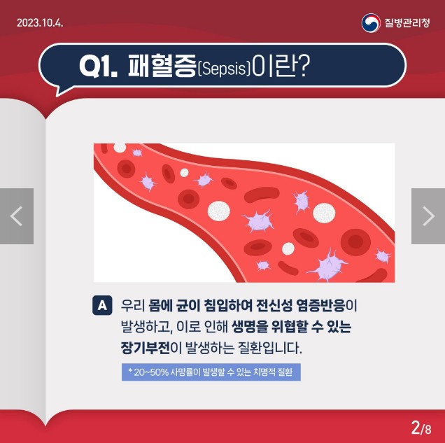 - A. 우리 몸에 균이 침입하여 전신성 염증반응이 발생하고, 이로 인해 생명을 위협할 수 있는 장기부전이 발생하는 질환입니다.