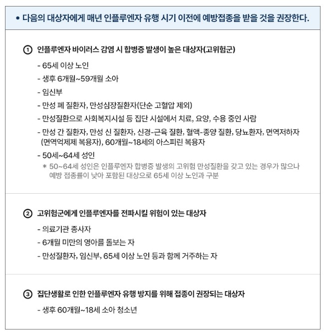 독감(인플루엔자)은 단순한 호흡기 질환이 아니라 감염 시 만성 기저질환의 악화, 폐렴, 심혈관질환 등 각종 합병증까지 유발하기 때문에 예방접종이 꼭 필요합니다.