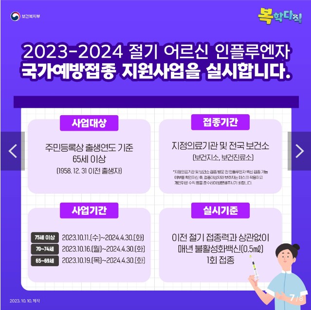 2023~2024 절기 인플루엔자 국가예방접종 실시!