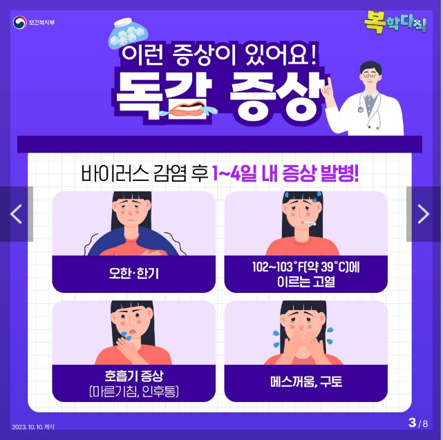 · 일반적인 독감 증상 (고열, 기침, 두통, 근육통)