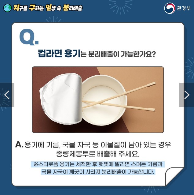 Q. 컵라면 용기는 분리배출이 가능한가요?