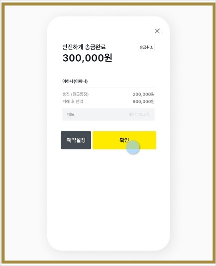 이후에는 코드송금도 카카오톡 친구송금과 동일하게 진행되는데요. 보낼 금액을 입력하고, 설정해놓은 비밀번호 입력이나 지문 인식을 하면 송금이 완료돼요. 코드송금도 횟수 제한 없이 수수료 무료로 이용할 수 있어요.