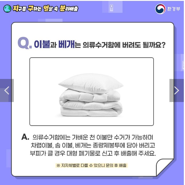 Q. 이불과 베개는 의류수거함에 버려도 될까요?