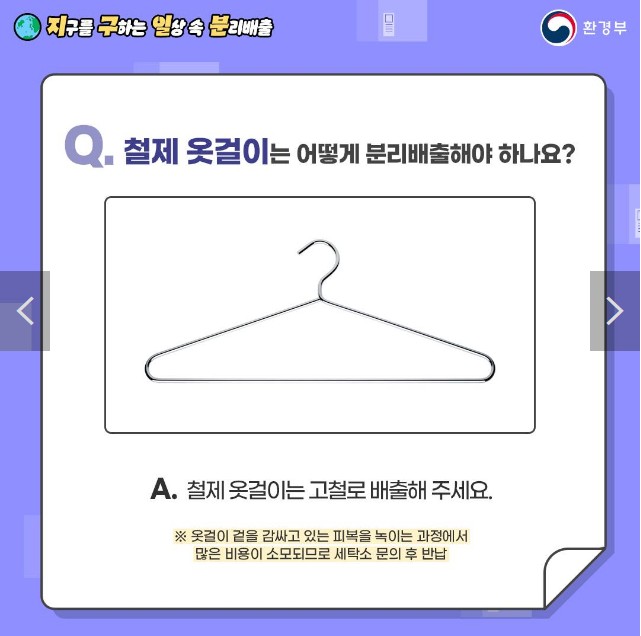 ※ 옷걸이 겉을 감싸고 있는 피복을 녹이는 과정에서 많은 비용이 소모되므로 세탁소 문의 후 반납