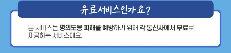 ∨ 본 서비스는 명의도용 피해를 예방하기 위해 각 통신사에서 ‘무료’로 제공되는 서비스예요.
