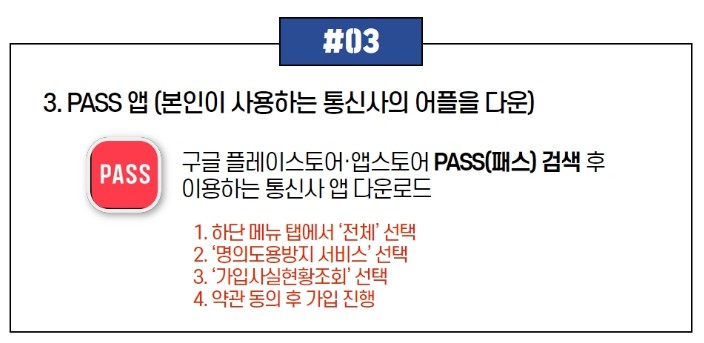 ∨ 방법 3. 통신사에서 운영하고 있는 패스(PASS) 앱을 통해서 신청하는 방법