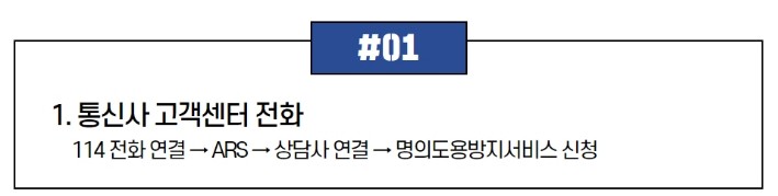 - 114 전화 연결 → ARS → 상담사 연결 → 명의도용방지 서비스 신청