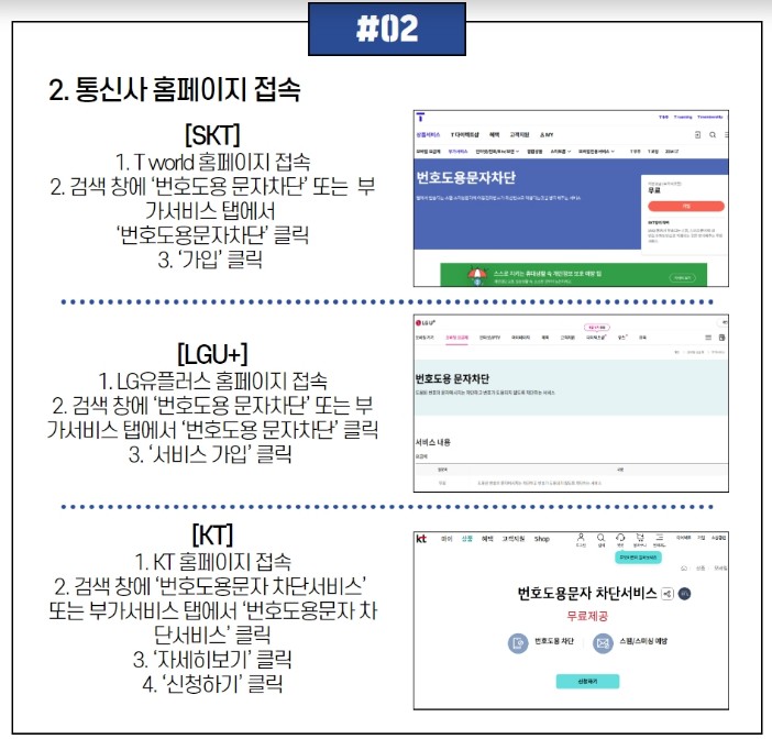 ∨ 인터넷으로 발송되는 도용된 휴대폰 번호의 문자메시지를 차단하고 싶을 때