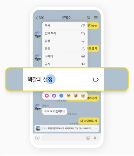 톡방마다 기억해야할 대화내용에 책갈피 설정을 했습니다. ^^ 아우 좋아라~