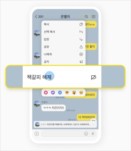 STEP 1. 책갈피를 설정하고 싶은 메시지를 꾸욱 눌러보세요.