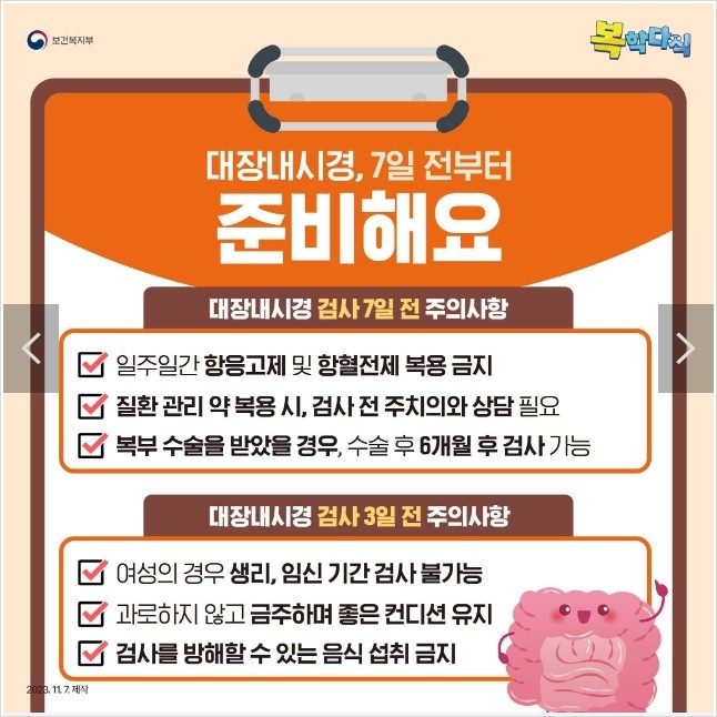 | 대장내시경 7일 전부터 준비 |