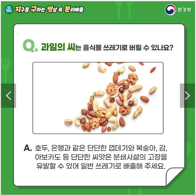 | Q. 과일의 씨는 음식물 쓰레기로 버릴 수 있나요? |