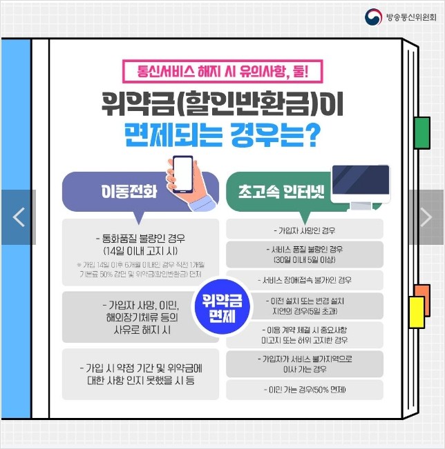 | 통신서비스 해지 시 유의사항 2. 위약금(할인반환금)이 면제되는 경우는? |