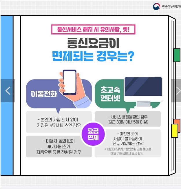 | 통신서비스 해지 시 유의사항 3. 통신요금이 면제되는 경우는? |