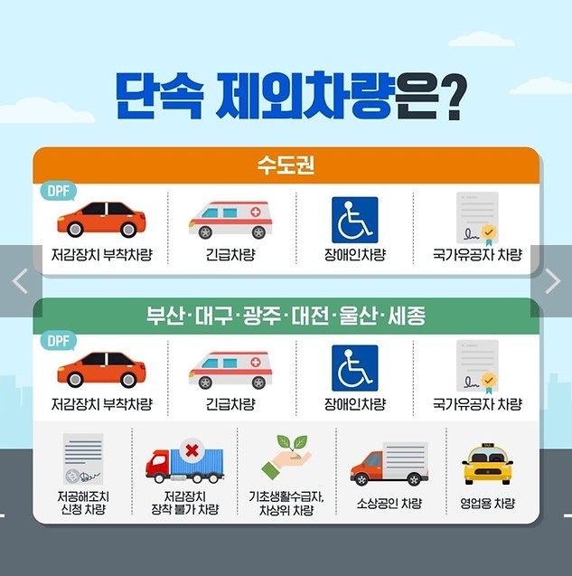 - 저감장치 부착차량, 긴급차량, 장애인차량, 국가유공자 차량 - 부산·대구·광주·대전·울산·세종