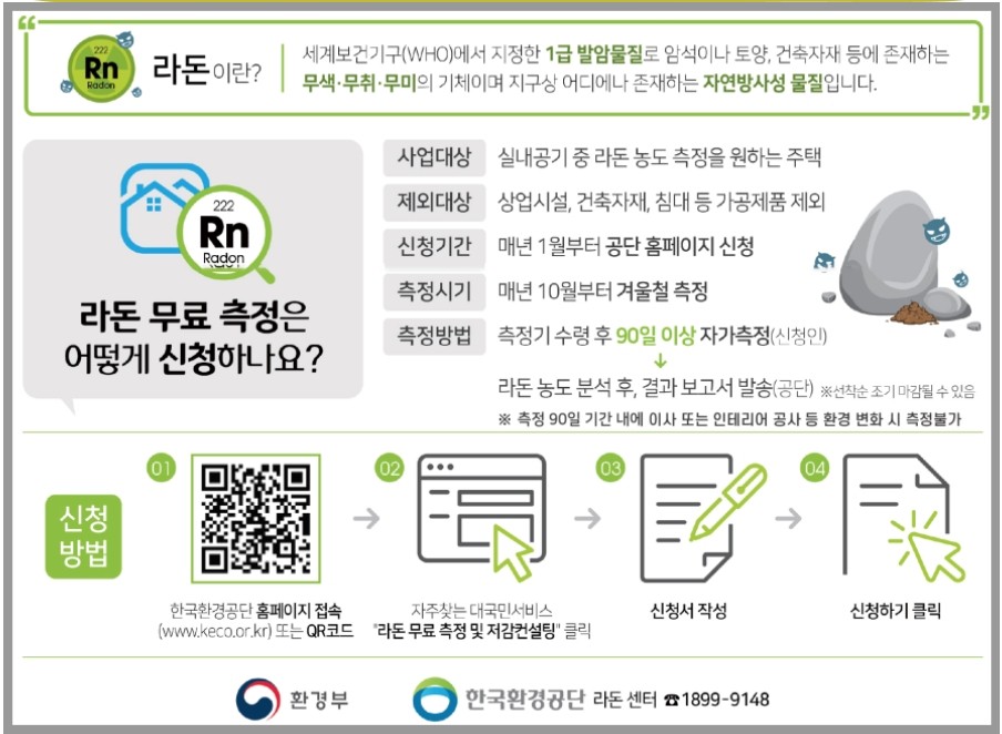 ▷ 사업대상 : 실내 공기 중 라돈 농도 측정을 원하는 주택