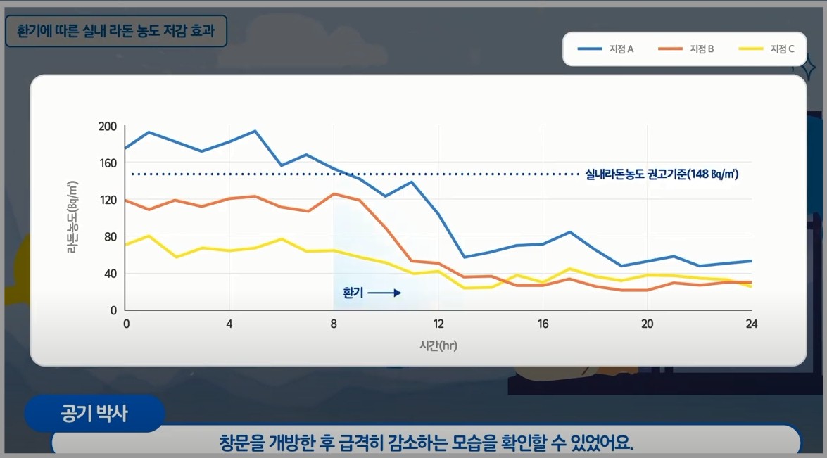 "실내 라돈을 저감 하는 가장 손쉽고 효과적인 방법은 바로 환기!"