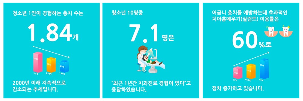 - 청소년 10명 중 5.6명이 영구치에 충치 경험