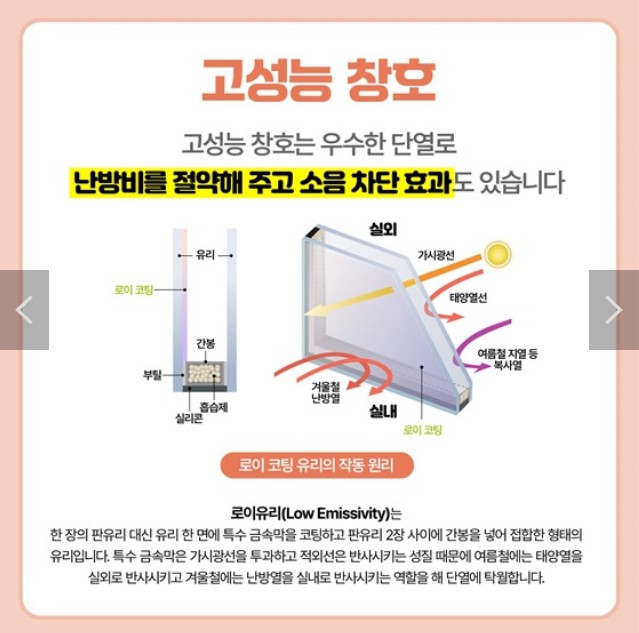 - 고성능 창호는 우수한 단열로 난방비를 절약해 주고 소음 차단 효과도 있습니다.