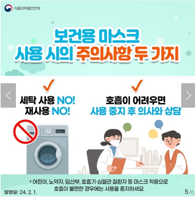보건용 마스크 사용 시의 주의사항 두 가지