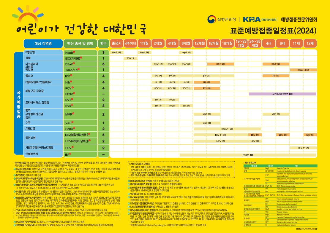- A. 초등학교 입학생은 4~6세에 맞아야 하는 추가접종 4종