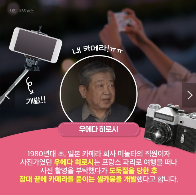장대 끝에 카메라를 붙이는 셀카봉을 개발