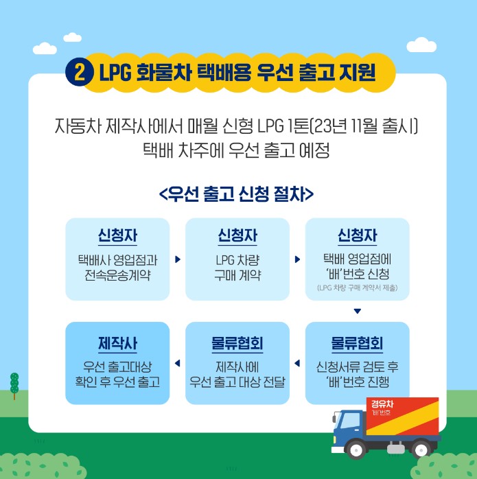 자동차 제작사에서 매월 신형 LPG 1톤(23년 11월 출시) 택배 차주에 우선 출고 예정
