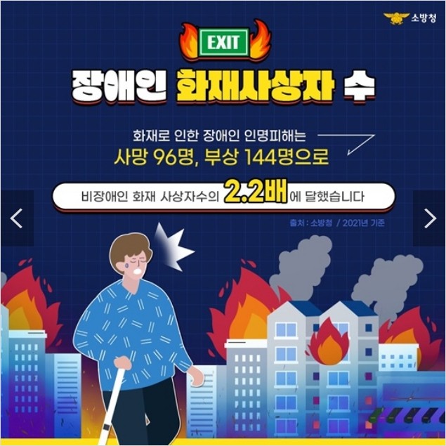 사망 96명, 부상 144명으로 비장애인 화재 사상자수의 2.2배