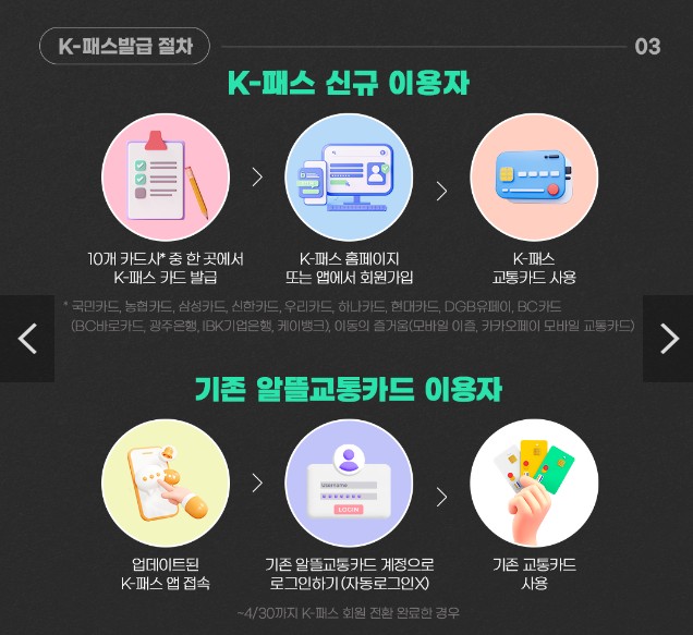 ③ K-패스 교통카드 사용 - ㆍ기존 알뜰교통카드 이용자 (~4/30까지 K-패스 회원 전환 완료한 경우)