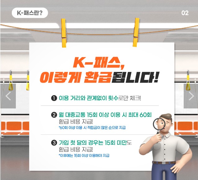 - ② 월 대중교통 15회 이상 이용 시 최대 60회 환급 비용 지급!